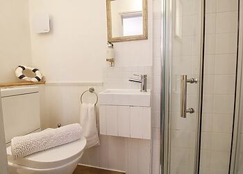 - Roll-top bath and rainfall shower